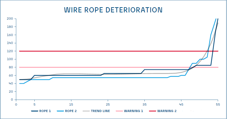 Sarà possibile visionare i dati storici della fune per costruire una curva di evoluzione delle difettologie presenti. Questo passaggio permetterà al manutentore di prevedere con largo anticipo le operazioni di sostituzione.